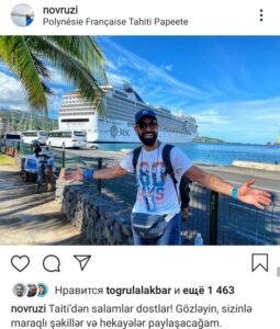 baba.aghayev – 12.5k izləyiciyə sahib olan Baba bəy turizm sahəsi üzrə mütəxəssisdir. Baba bəy deyir ki, “57 ölkə, 200-dən artıq şəhərə səyahət etmişəm. Xərcləri deməyim çətindir, amma rahat 2 dənə 2107, 2 dənə Niva, bir dənə də Çeşka ala bilərdim”. Baba bəy həmçinin Vizam.az və Pickvisa.com startaplarının təsisçisidir.